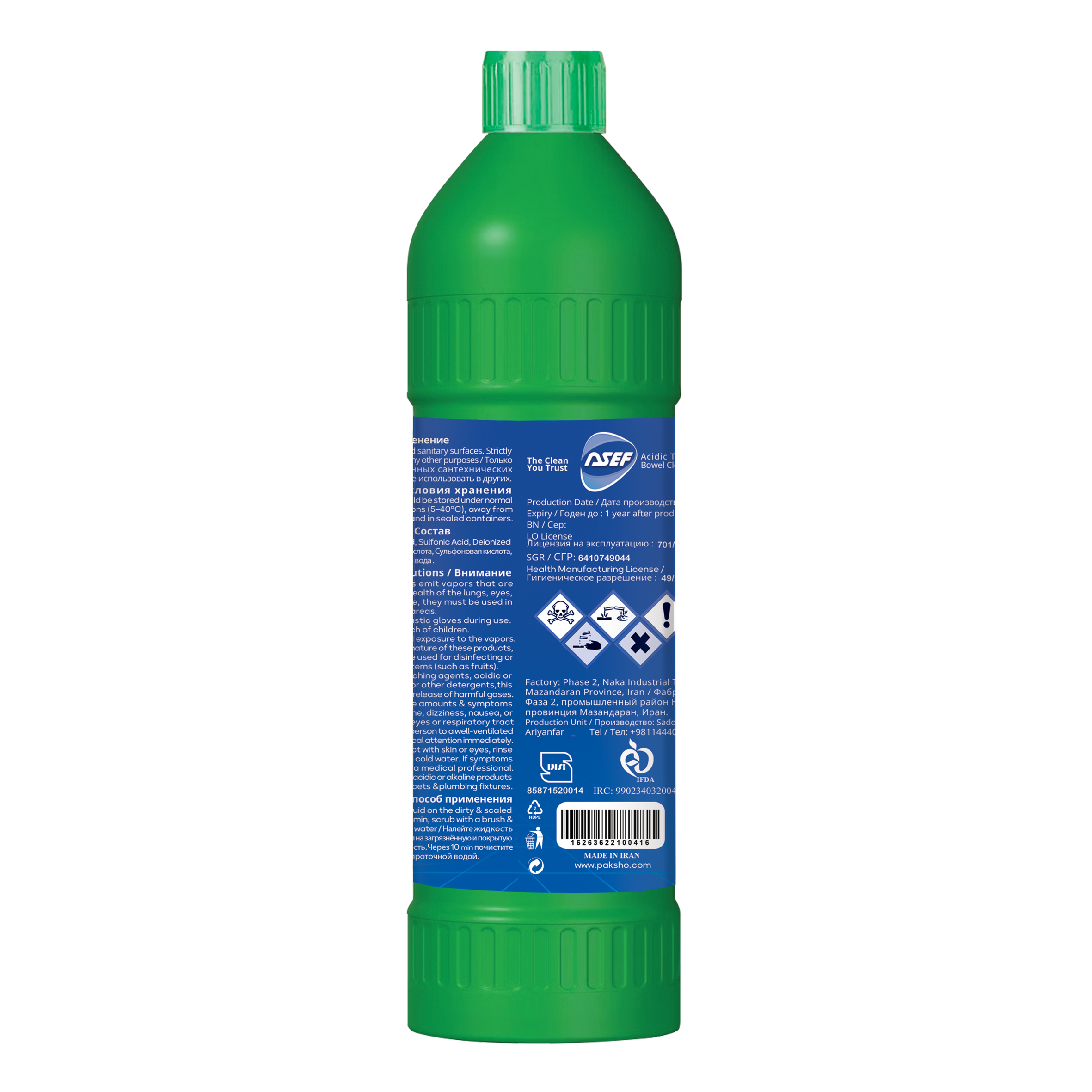 Asef Acidic Toilet Bowl Cleaner is a powerful and professional product designed specifically for cleaning and disinfecting bathroom surfaces. With its strong acidic formula, it quickly removes stubborn stains, dirt, and limescale buildup from various surfaces such as ceramics, tiles, and sanitary ware. Below, we will explore the key features and specifications of this product.