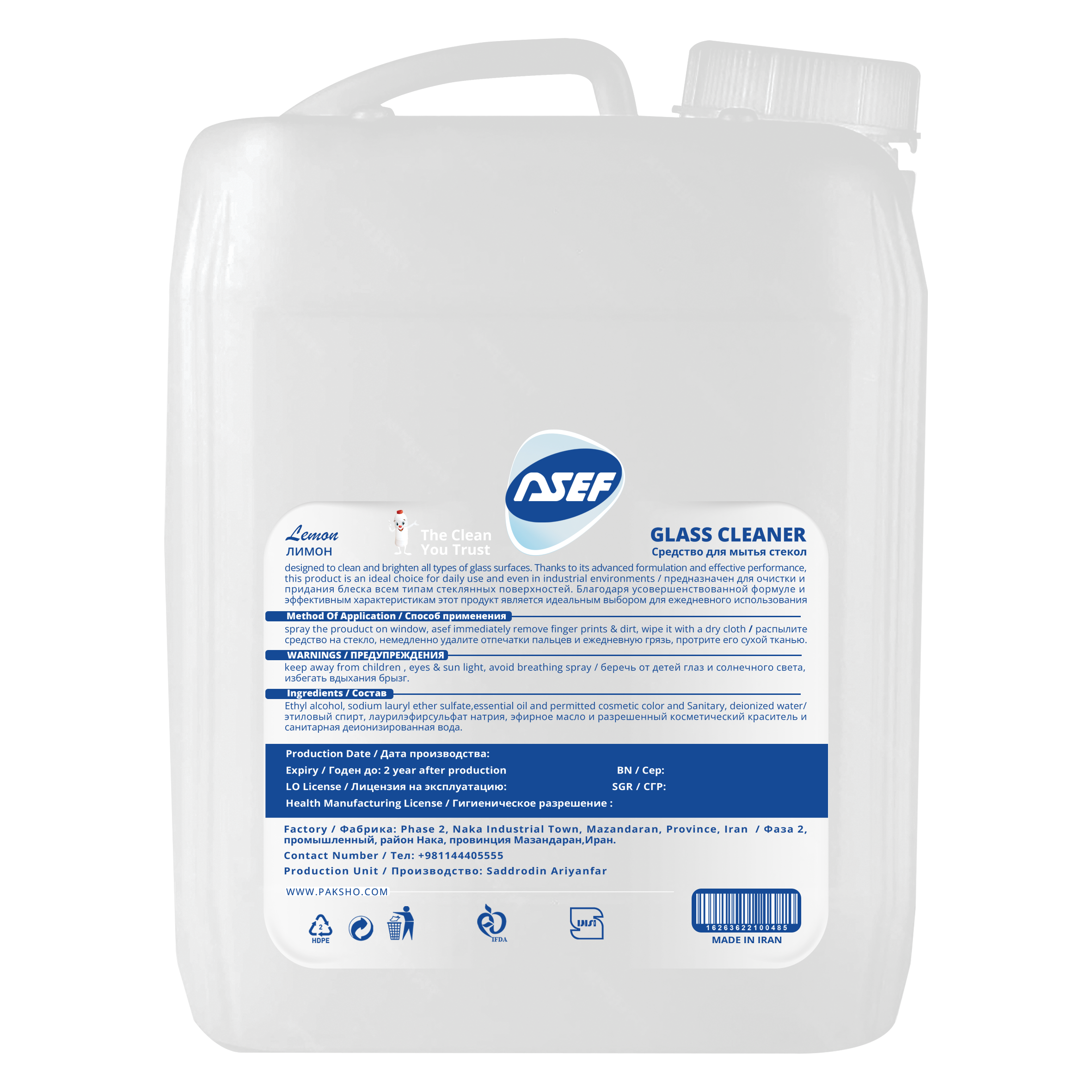 Asef Glass Cleaner is one of the high-quality products of the Asef brand, designed to clean and shine all types of glass surfaces. With its advanced formulation and effective performance, this product is an ideal choice for daily use and even for industrial environments. Below, we will explore the product in detail from various aspects.