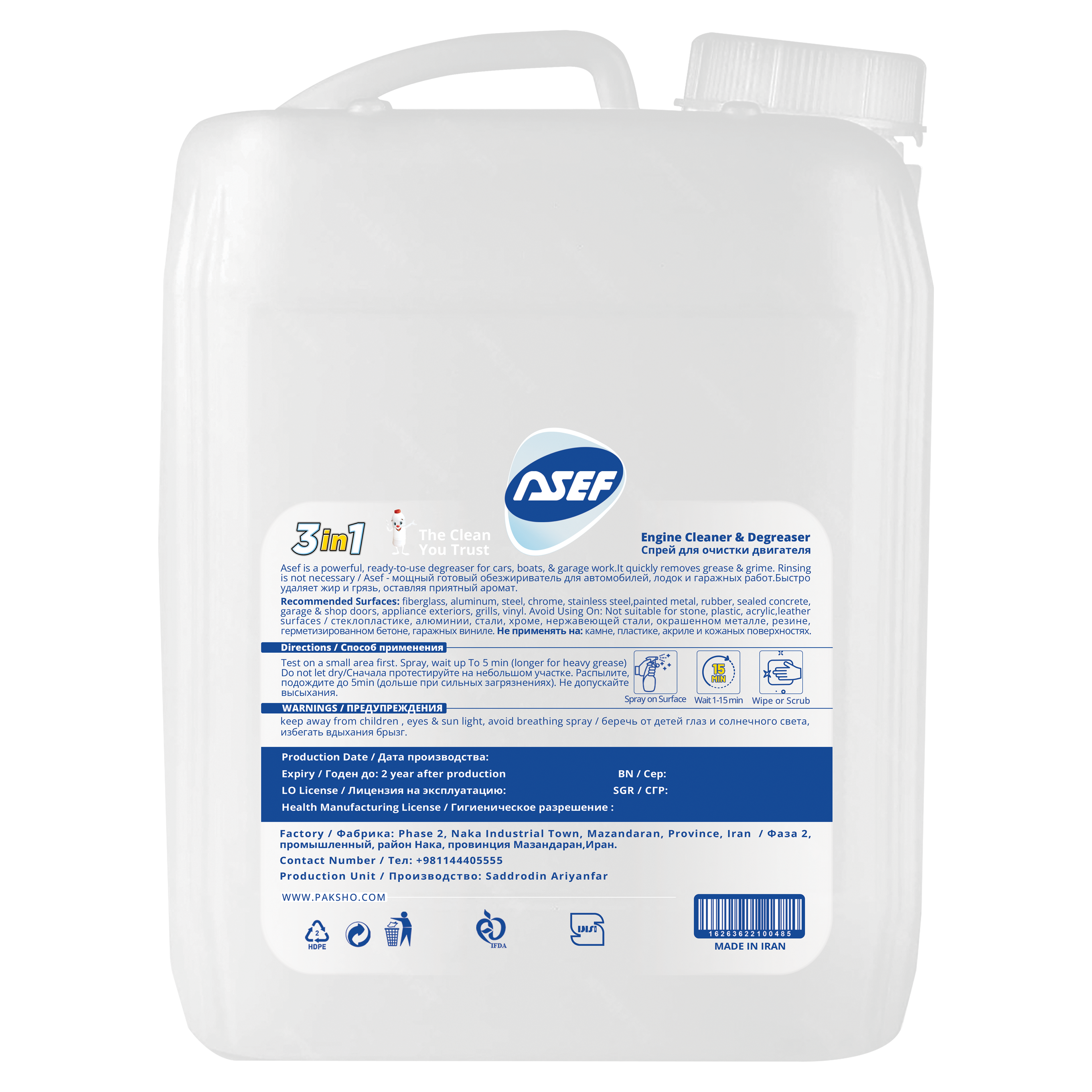 Asef Engine Degreaser and Cleaner is a professional-grade, high-quality product designed for cleaning vehicle engines. With its advanced formula, it quickly removes dirt, grease, and stubborn stains from the engine surface, improving performance and extending the engine’s lifespan.