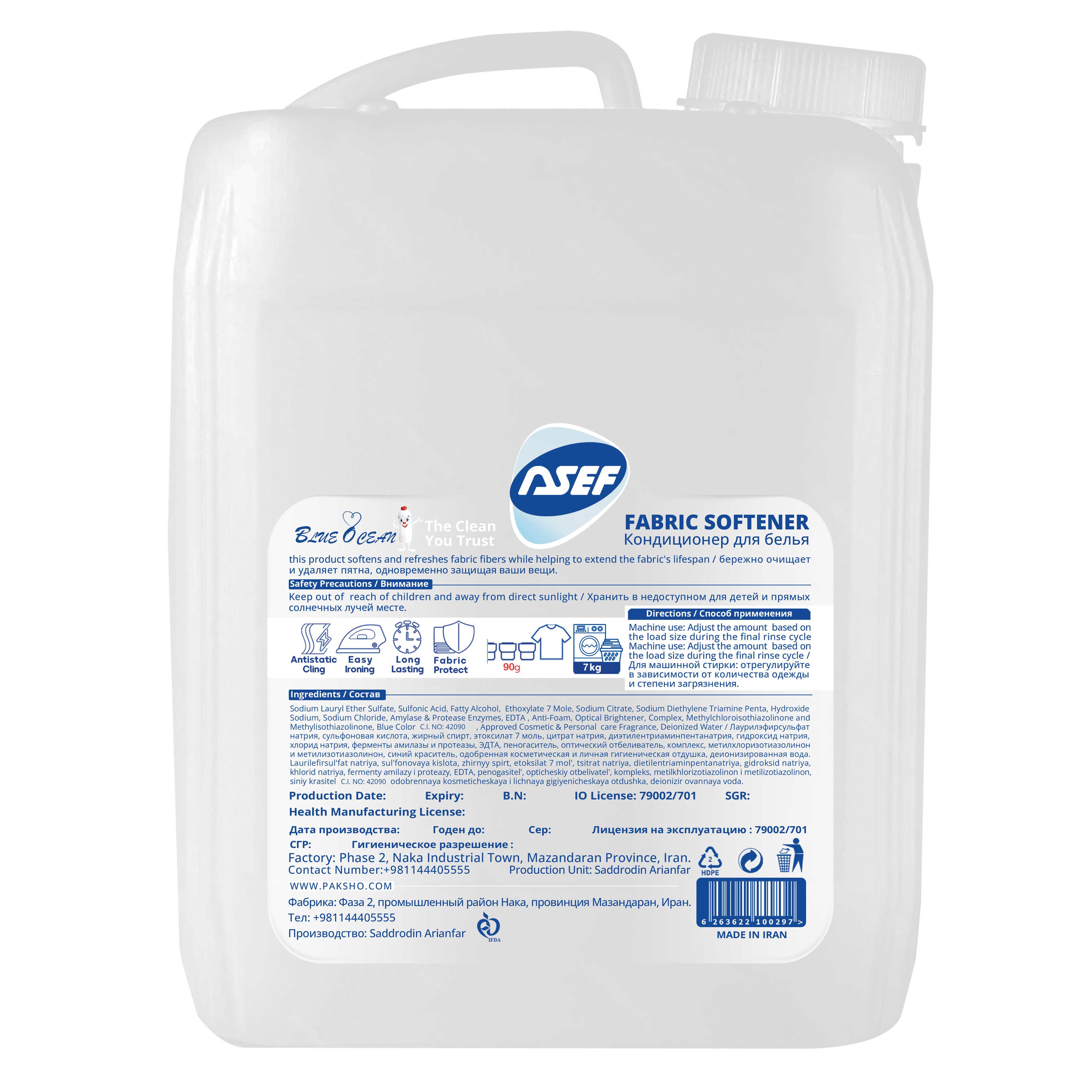 Asef Fabric Softener effectively softens and freshens clothes and towels, eliminating fabric roughness and dryness. Suitable for various fabrics such as cotton, linen, and synthetic fibers, this product helps prevent wrinkles and static electricity, thereby extending fabric durability and maintaining their quality.
